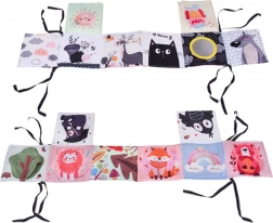 Lette stofbøger med farverige og kontrastfulde motiver og integreret spejl støtter visuel opmærksomhed, nysgerrighed og barnets første interaktioner.
