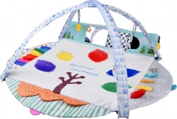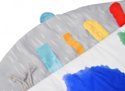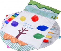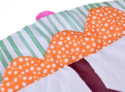 Denne store, runde aktivitetsmåtte tilbyder en behagelig, polstret overflade og alsidig brug: som et lege-/aktivitetsrede med buer til ophængning af legetøj eller som en selvstændig måtte til fri leg og maveøvelser. Høj kontrast i mønstre, varierende teksturer og blide lyde stimulerer sanserne naturligt og udvikler både fin- og grovmotorik.