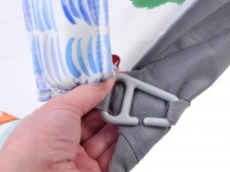 To fleksible buer bruges til at hænge legetøj op; når de fjernes, får du en stor, komfortabel flade til maveleje og fri leg.