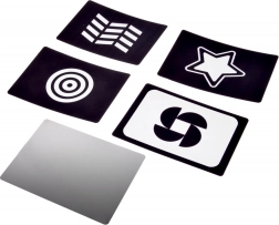 - Måtte, 2 buer, sæt af ophængslegetøj: spejl, kontrastkort, bideringe (stjerner), blød kontrastbold, rasle, knitrende elementer