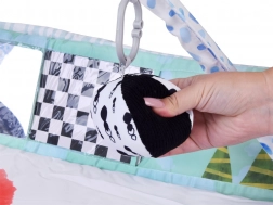 Høj kontrast, forskellige teksturer samt knitrende og raslende elementer støtter syn, hørelse og berøring. Spejl og kort motiverer babyen til at observere og koncentrere sig.