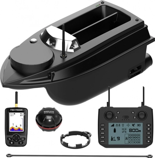 Den trådløse farvesonar leverer data om dybde 0,6–36 m, vandtemperatur, fiskestørrelse og bundstruktur, mens Anti‑Clutter reducerer forstyrrelser og forbedrer læsbarheden. Det rummelige kammer med skillevæg rummer op til 3 kg foder, så du kan klare lange ture uden hyppig genopfyldning.