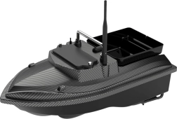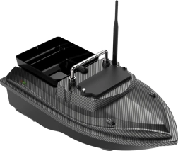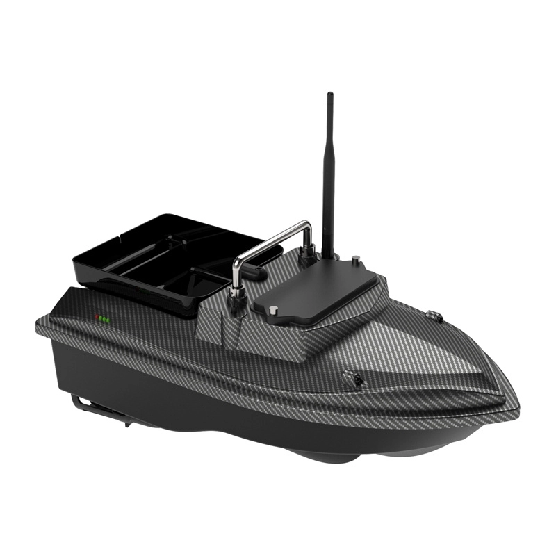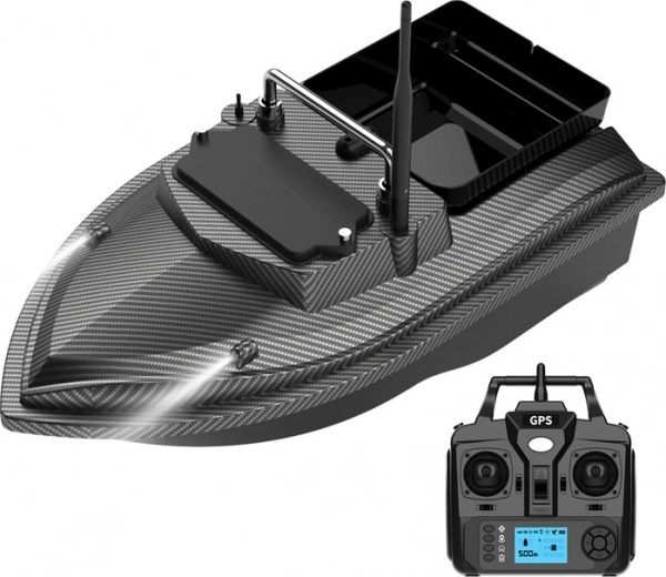 Betjeningen foregår via en GPS-fjernbetjening med bagbelyst LCD, som tilbyder konstant marchhastighed, styring af lys og en knap til udløsning af agn. Det robuste kabinet af ABS forstærket med kulfiber, den foldbare metalbærerem og propelskærme sikrer lang levetid og sikker drift.