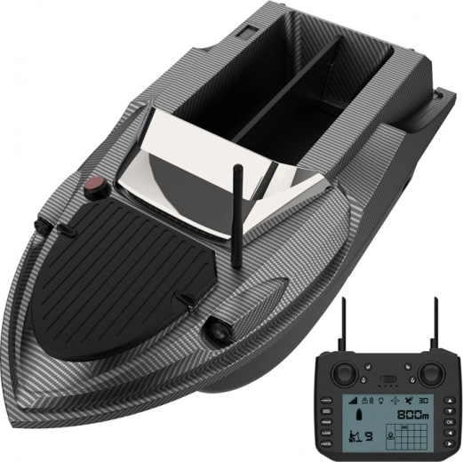 Den robuste konstruktion af ABS og kulfiber, tætnede nøgleområder og rustfri skruer beskytter elektronikken mod vand og korrosion. To 550 børstemotorer med gyroskopisk stabilisering og vandkøling sikrer jævn og pålidelig drift. Dobbeltkammer rummer op til 3 kg foder og muliggør separat tømning. Takket være LED-lys navigerer du sikkert også i mørke.