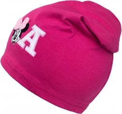 Børnehue fra NEW BABY med det populære MINNIE-motiv vil glæde enhver lille modeelsker. Takket være det bløde og åndbare bomuldsstrik er den ideel til omskifteligt efterårsvejr – den varmer, men uden at overophede. Den lyserøde farve er nem at kombinere med almindeligt børnetøj.