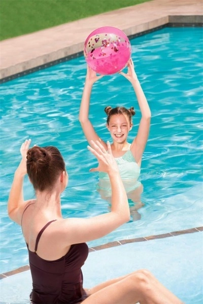 Elegant brokat strandbold Bestway bringer masser af sjov i fritiden. Denne gyldne bold er fyldt med glitrende brokat, som hvirvler og glimter glædesfyldt under legen.