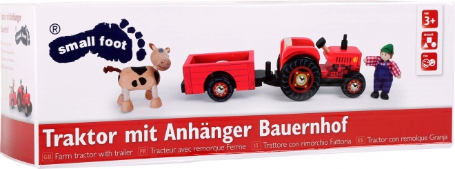 Small Foot trætraktor med snor med aftagelig trailer, landmand og ko. Gummibelagte hjul for støjsvag kørsel. Ideel legetøj til børn fra 3 år.