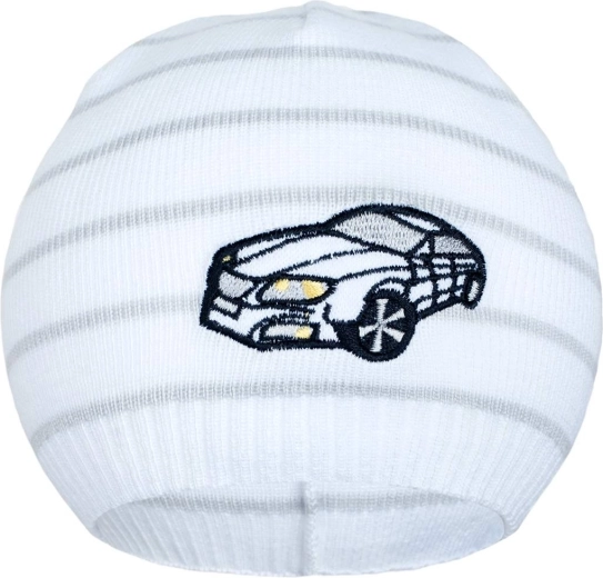 Designet med farvede striber og bilmotiv vil glæde enhver lille chauffør og er nemt at matche med hverdagsoutfits. Huen er velegnet til gåture, barnevognen og legepladsen.