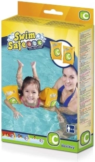 Oppustelige Swim Safe ærmer gule 2 kamre 25x15 cm i æske 12x19,5 cm fra 3-6 år