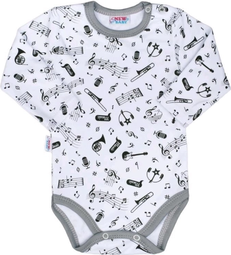 Det stilfulde babybody NEW BABY Music begejstrer med blødt materiale og et legende, all-over print. Takket være kvalitetsbomuld er det blødt, åndbart og skånsomt mod babyens sensitive hud. Praktiske trykknapper på skulderen og i skridtet gør det nemt at klæde på og skifte ble.