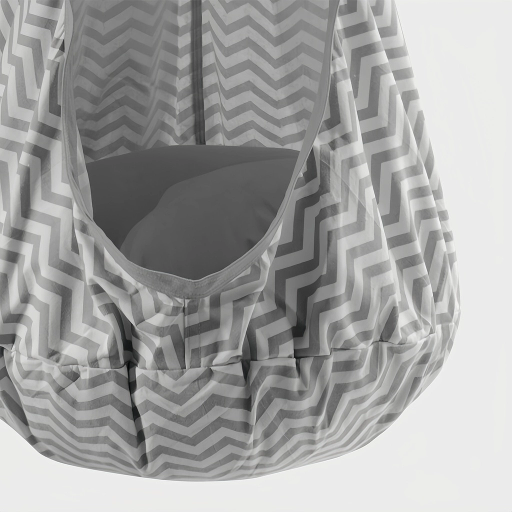 Den hængende hængekapsel fra 2Kids Toys er et skønt sted, hvor børn kan slappe af, læse eller gynge blidt. Den naturlige 100% bomuld er behagelig at røre ved, åndbar og samtidig tilstrækkelig stærk til sikker gyngning. Takket være den universelle grå farve passer den nemt ind på både børneværelset og i stuen.