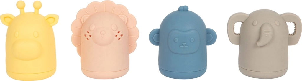Denne søde flok – løve, elefant, giraf og abe – forvandler hvert bad til et glædeligt ritual. Takket være forskellige åbninger og teksturer sprøjter hvert dyr vand på sin unikke måde, hvilket både underholder og stimulerer børns nysgerrighed og sanser.
