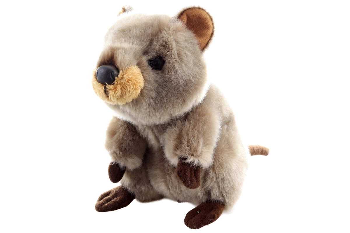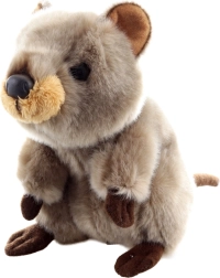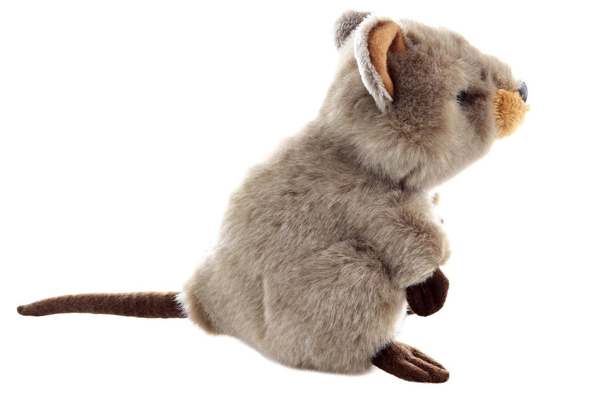 Denne charmerende plysbamsekænguru quokka er fremstillet med fokus på kvalitet og hensyn til naturen. Takket være de kompakte mål passer den nemt i barnevogn, tremmeseng og små børnehænder. Den ultra-bløde overflade indbyder til kram og hjælper de mindste med at udvikle sanserne.