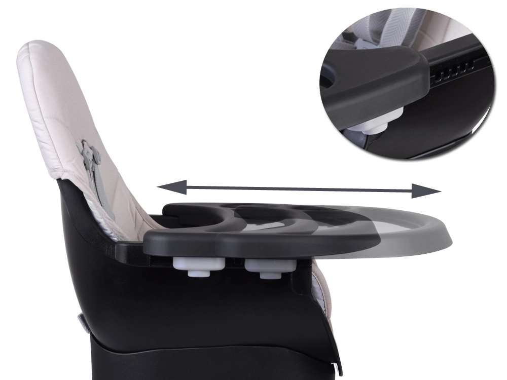 - Høj højstol med justerbart og aftageligt bakke/bord