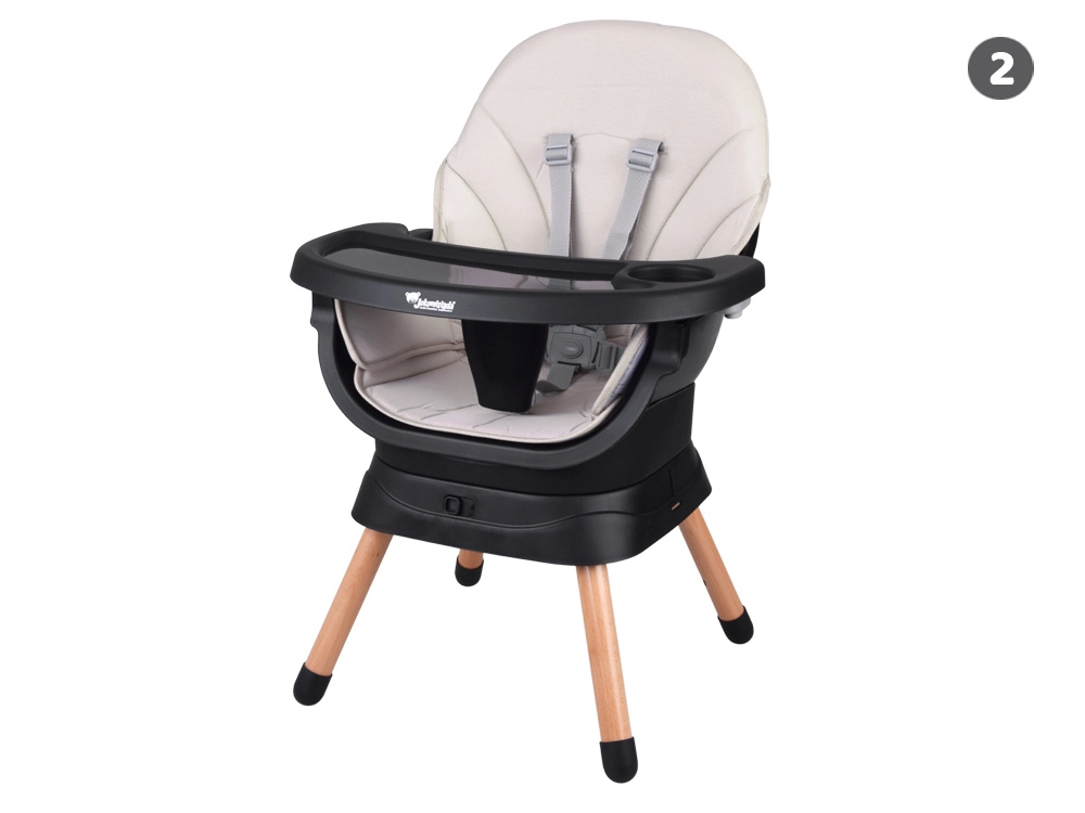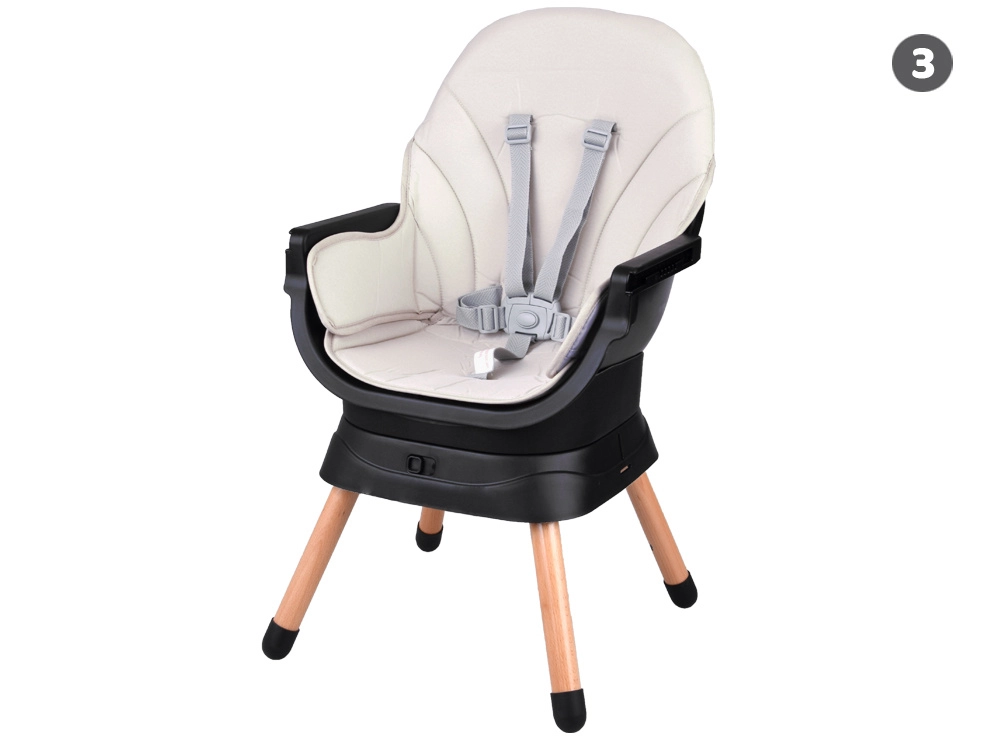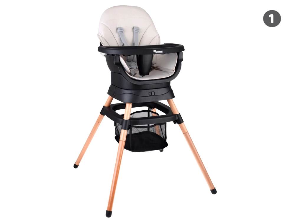 Denne moderne og ergonomiske højstol kombinerer stabilitet, sikkerhed og modulært design. Med et enkelt kliksystem tilpasses den efter barnets aktuelle behov – fra de første måltider til selvstændig sidde- og legekomfort. Det minimalistiske udseende passer ind i enhver indretning.