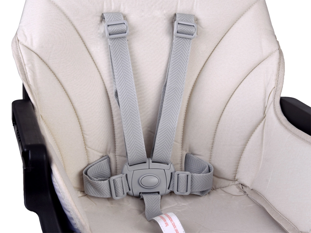 - Fem-punkts seler, skridtstrop og skridsikre fødder