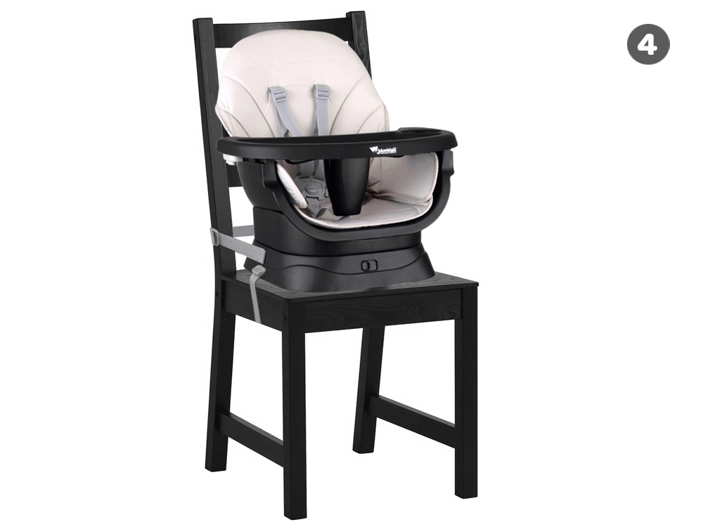 - Sædeforlænger til spisebordsstol med fastgørelsesremme til brug ved bordet