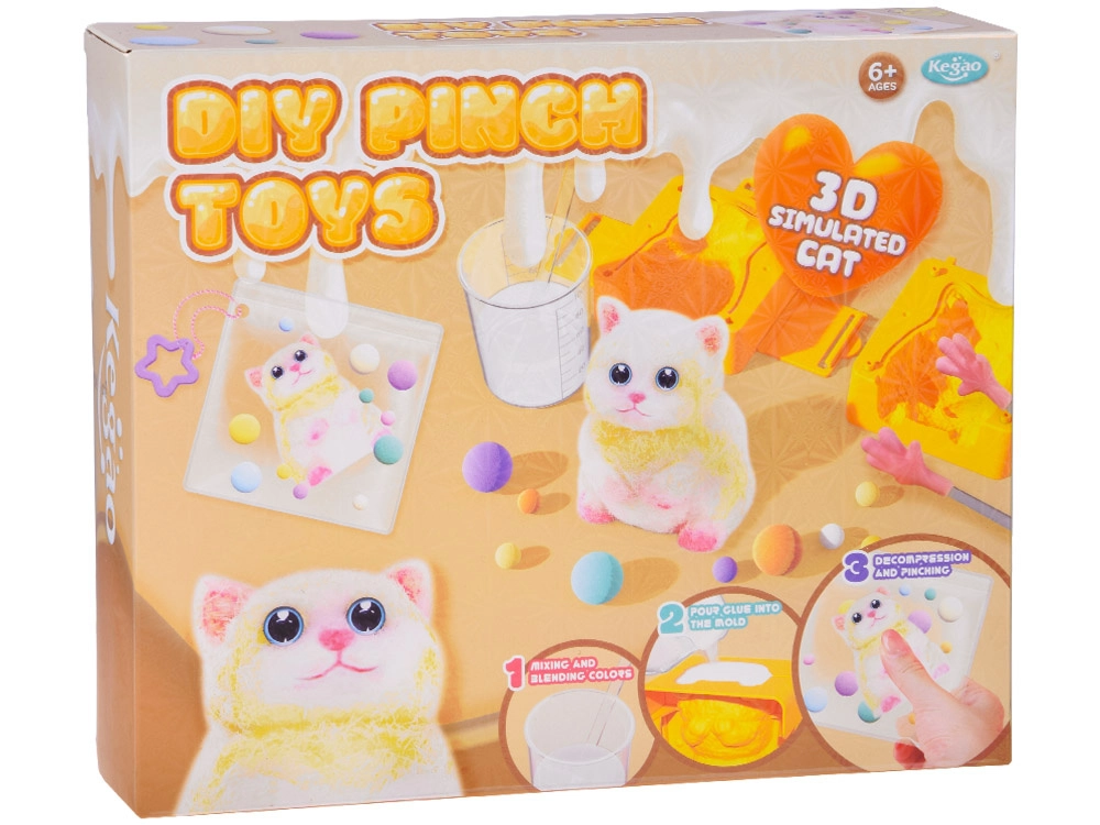 Med dette gør-det-selv sæt blander børnene selv massen, hælder den i en katteform og dekorerer den efter hærdning med farve, øjne, luftig “pels” og bløde kugler. Den medfølgende pyntepose med kæde forvandler resultatet til et praktisk vedhæng, de kan have med overalt – på rygsæk, taske eller nøgler.
