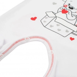 Praktiske trykknapper på skulderen og mellem benene muliggør hurtig påklædning uden unødigt stress. Kontrastfarvede kanter og et stort museprint skaber et charmerende design, der glæder både børn og forældre.