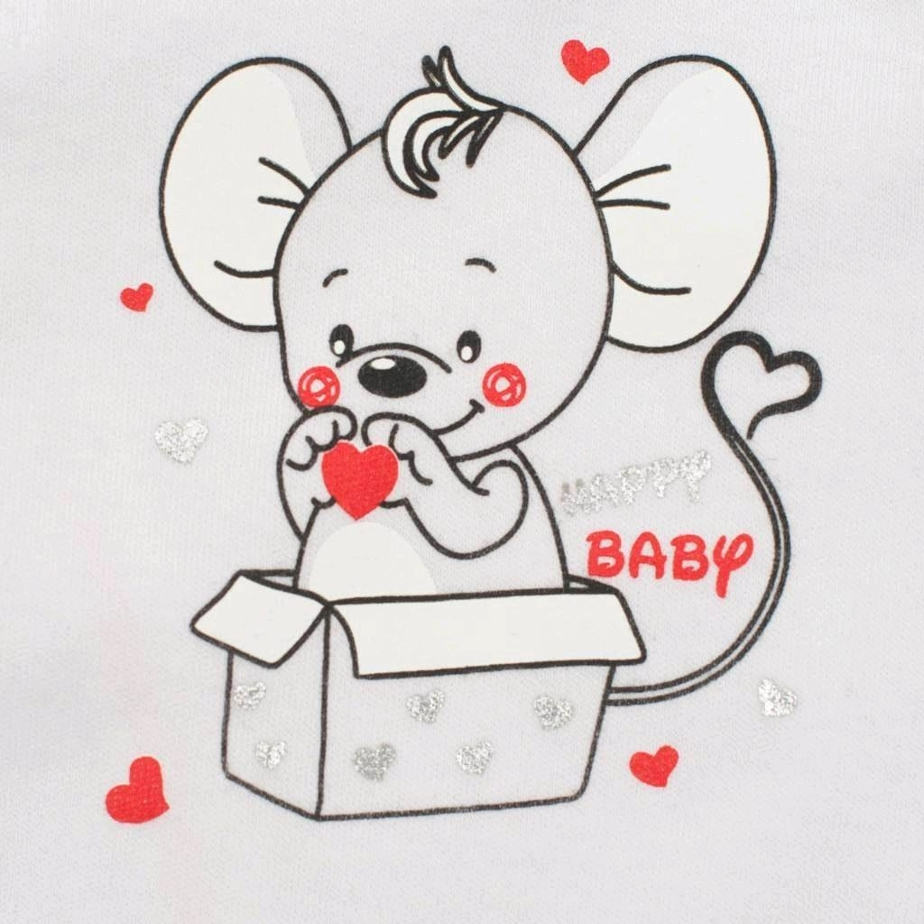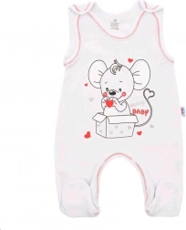 Dette sæt til baby kombinerer blødhed, praktikalitet og et charmerende design. Den ensfarvede jakke med trykknapper i hele længden er nem at tage af og på. Sparkedragten prydes af kontrastkant og et stort museprint, som giver et legende udtryk.