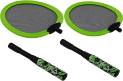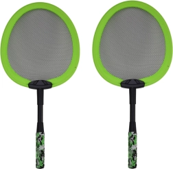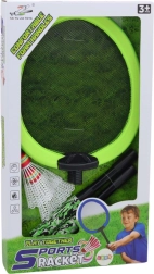 Oplev sjov med familie og venner med dette praktiske badminton-sæt. Konstruktion i plast af høj kvalitet sikrer holdbarhed og stabil kontrol over slagene, mens skumhåndtaget i grøn, hvid og sort giver et sikkert og komfortabelt greb. Den grønne ramme øger synligheden under spil, og den bløde sorte træfflade hjælper med at minimere slid på fjerboldene.