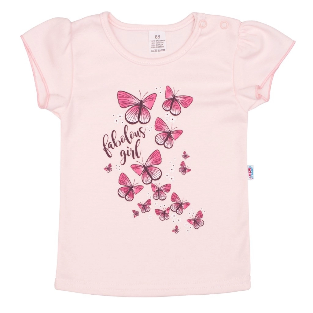 New Baby Butterflies-sættet er et ideelt valg til hverdagsbrug og festligere lejligheder. T‑shirten med korte ærmer prydes af et fint sommerfuglemotiv og praktisk lukning på skulderen, som gør det lettere at klæde babyen på. Den melerede nederdel med elegant volant giver outfittet et legende præg.