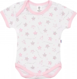 Kort ærme, konvolutskuldre og lukning mellem benene sikrer hurtig påklædning og bleudskiftning uden unødigt stress.