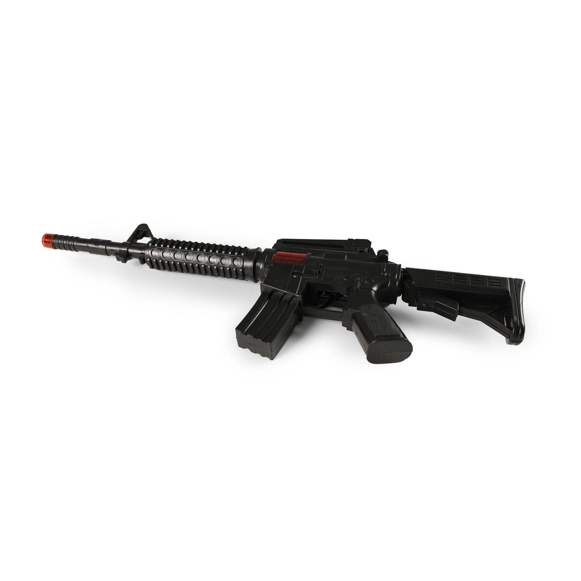 Denne legetøjsmaskinpistol vil begejstre alle små eventyrere. Når aftrækkeren trykkes ned, høres realistiske lydeffekter, og gnist-effekten giver legen spænding og stemning som på en actionmission. Den robuste udførelse er ideel til leg både inde og ude.