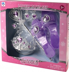 Dette magiske sæt til små prinsesser vil glæde alle, der elsker udklædning. Takket være den elegante sølv-lilla kombination og hjerteformede sten virker hele sættet festligt og fortryllende. Børn kan udvikle deres fantasi, kreativitet og rolleleg ved enhver sjov lejlighed – fra leg derhjemme til børnefester.
