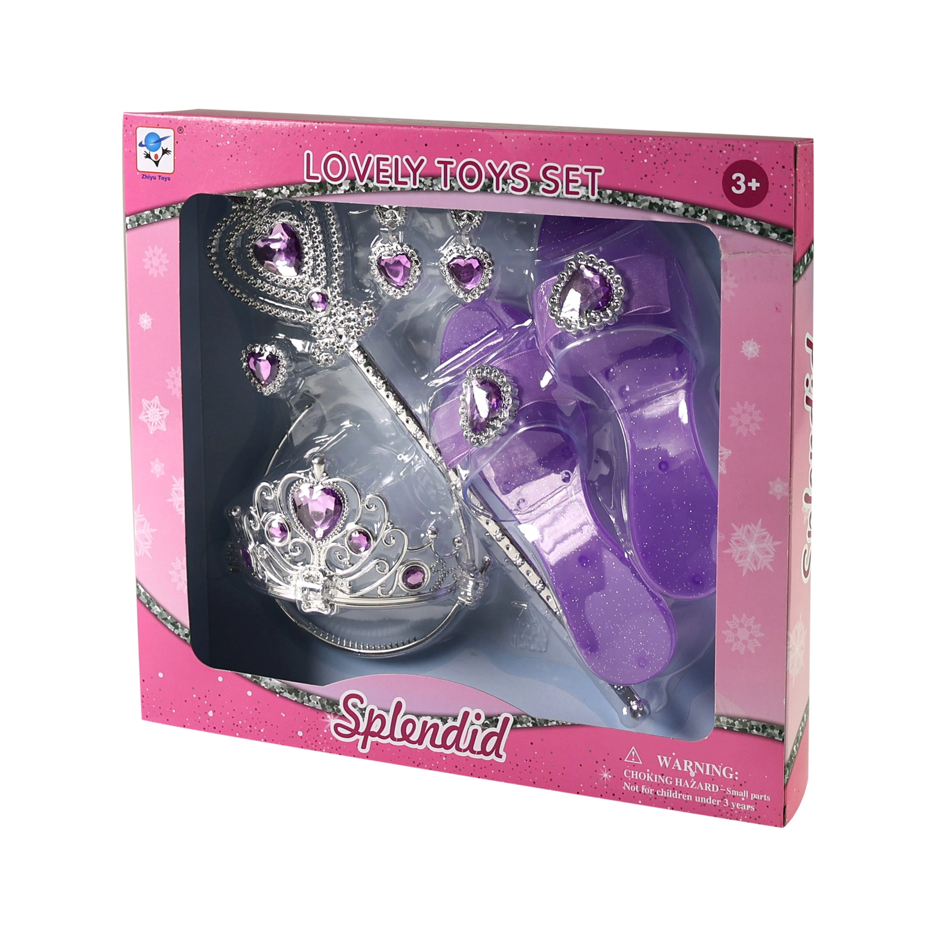 Forvandl hver eftermiddag til et eventyrligt øjeblik med dette stilfulde prinsessesæt til børn. Sættet indeholder lilla sko, sølvfarvet krone med lilla sten, tryllestav, øreringe og ring – alt perfekt matchet til leg, fastelavn og fest.