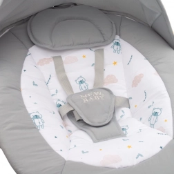 Den svingende liggestol NEW BABY Teddy Plus er den ideelle hjælper til både afslapning og underholdning af din baby. Med 4 svingehastigheder og en justerbar timer (8/15/30 min) kan du let tilpasse rytmen til barnets behov. De 12 melodier og tre niveauer af vibrationer giver skånsom beroligelse. Liggestolen kan indstilles i 2 positioner, og sædet kan drejes 90°, så du altid har let adgang til babyen.