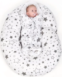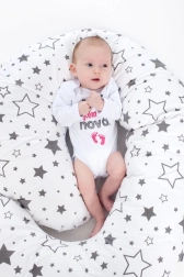 Takket være den bløde, men stabile polyesterfyld tilpasser puden sig kroppen og sikrer komfort i forskellige stillinger. Du kan bruge den ikke kun til amning, men også som en afslappende graviditetspude, ryglæn eller som støtte til babyen under hvile.
