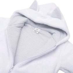 Den søde hætte med ører beskytter mod kulde, og det stribede for i 100% bomuld er skånsomt mod babyens sarte hud.