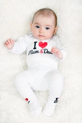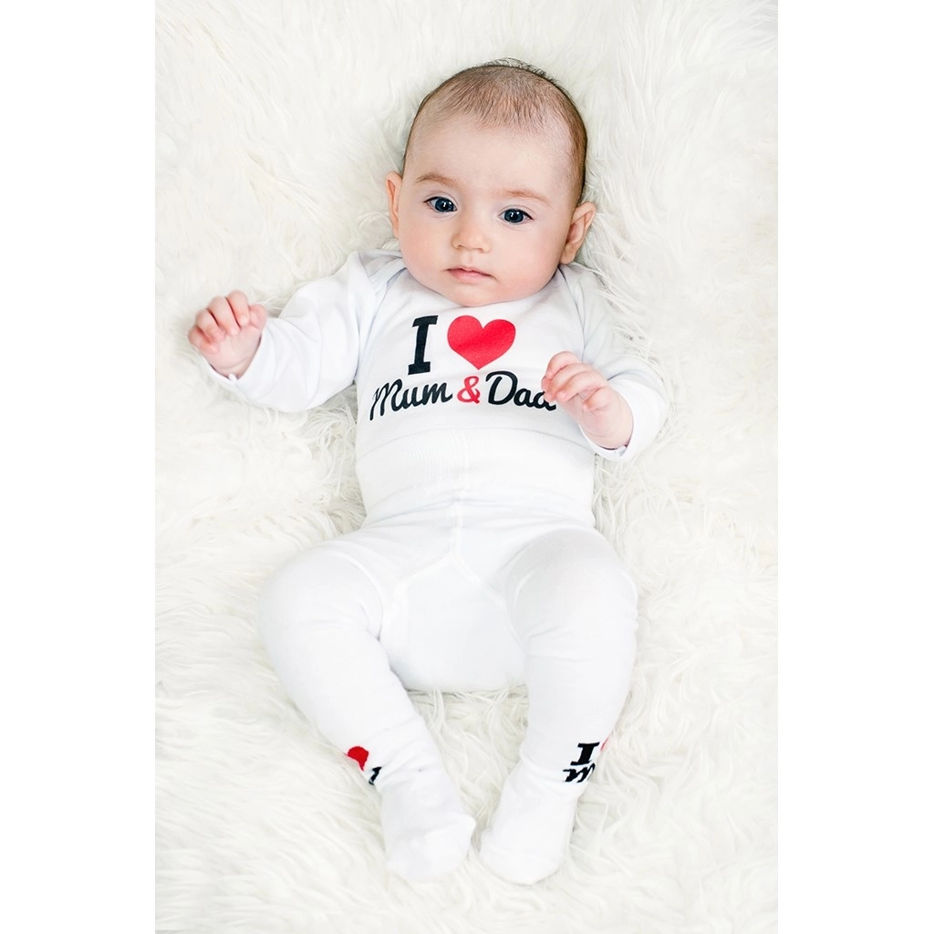 Giv din baby komfort og stil i det originale NEW BABY body med den sjove tekst I Love Mum and Dad. Den kvalitetsrige bomuld er behagelig at røre ved, åndbar og ideel til hverdagsbrug.