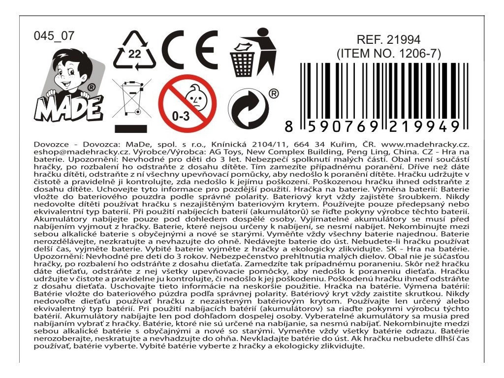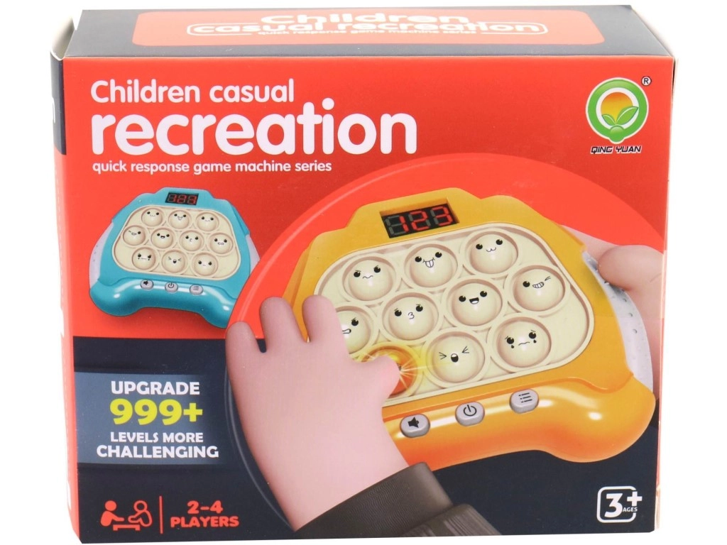 Pakken indeholder et plastiklegetøj i en praktisk boks. For at tage spillet i brug kræves 3 AAA-batterier (medfølger ikke).