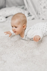 Det minimalistiske design i grå med stjerner passer både til piger og drenge og fuldender enhver børnegarderobe. Heldragten er ideel til hverdagsbrug, søvn og afslapning derhjemme.