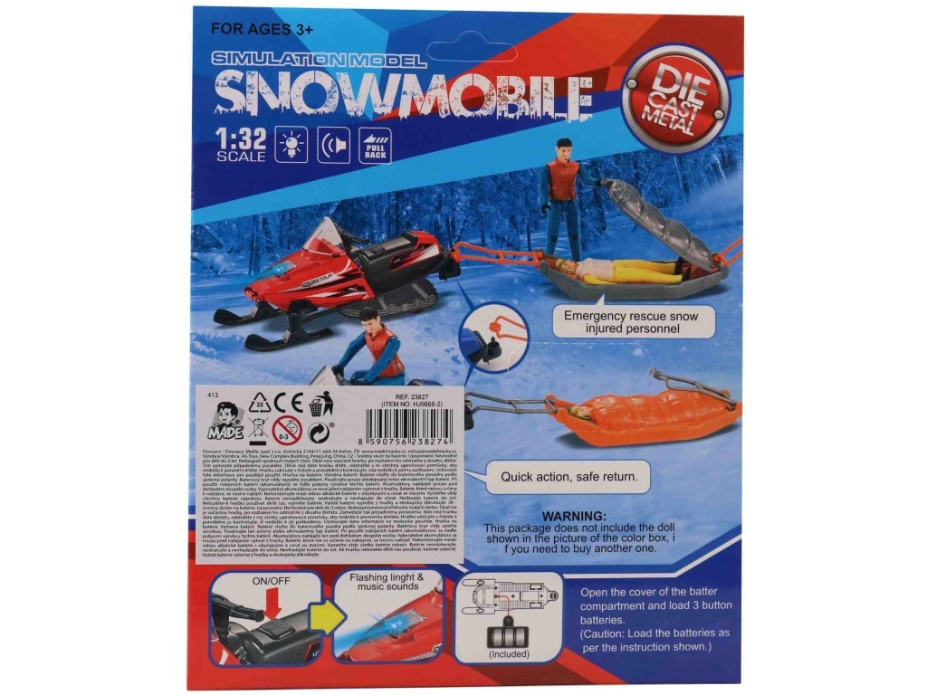 Oplev vinterens sjov med en detaljeret snescooter i holdbar plast. Takket være de kompakte mål 12 × 5 × 4 cm ligger den godt i hånden og på hylden, og med de medfølgende AG13-batterier er den klar til action straks efter udpakning. Den elegante window box-indpakning gør den oplagt som gave.