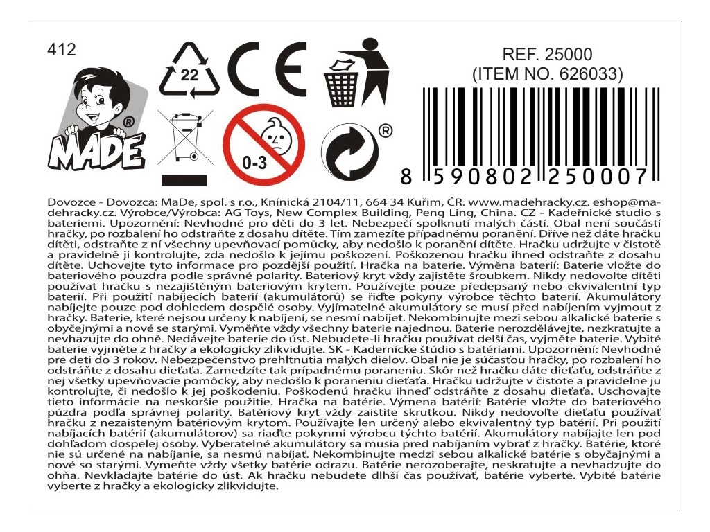 Legetøjet er fremstillet af holdbar plast og leveres i en vinduesboks, så det egner sig perfekt som gave. Målene 20 × 7 × 26 cm gør den nem at opbevare og tage med.