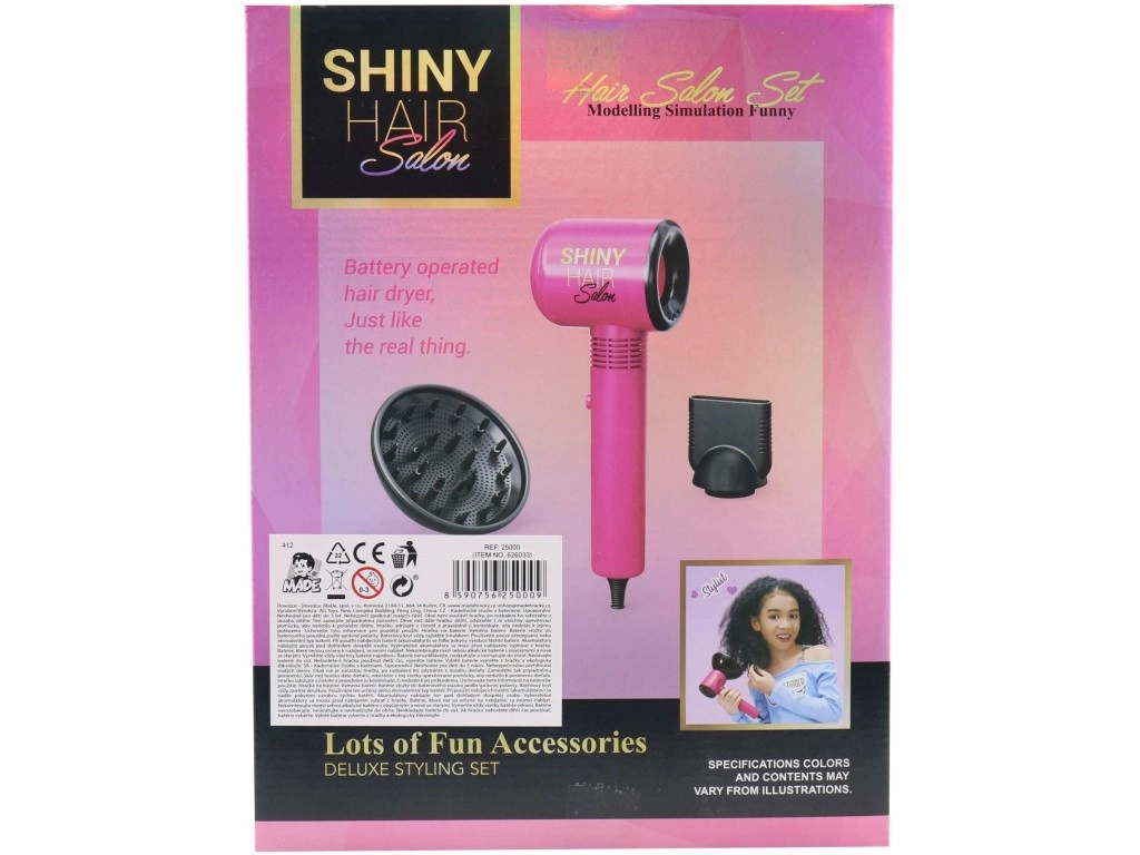 Forvandl børneværelset til en lille frisørsalon! Den børnevenlige føntørrer fra hårstudiet fremmer kreativitet, rolleleg og finmotorik. Med sin lette konstruktion og tilpassede størrelse er den ideel til små hænder og sikker leg derhjemme.