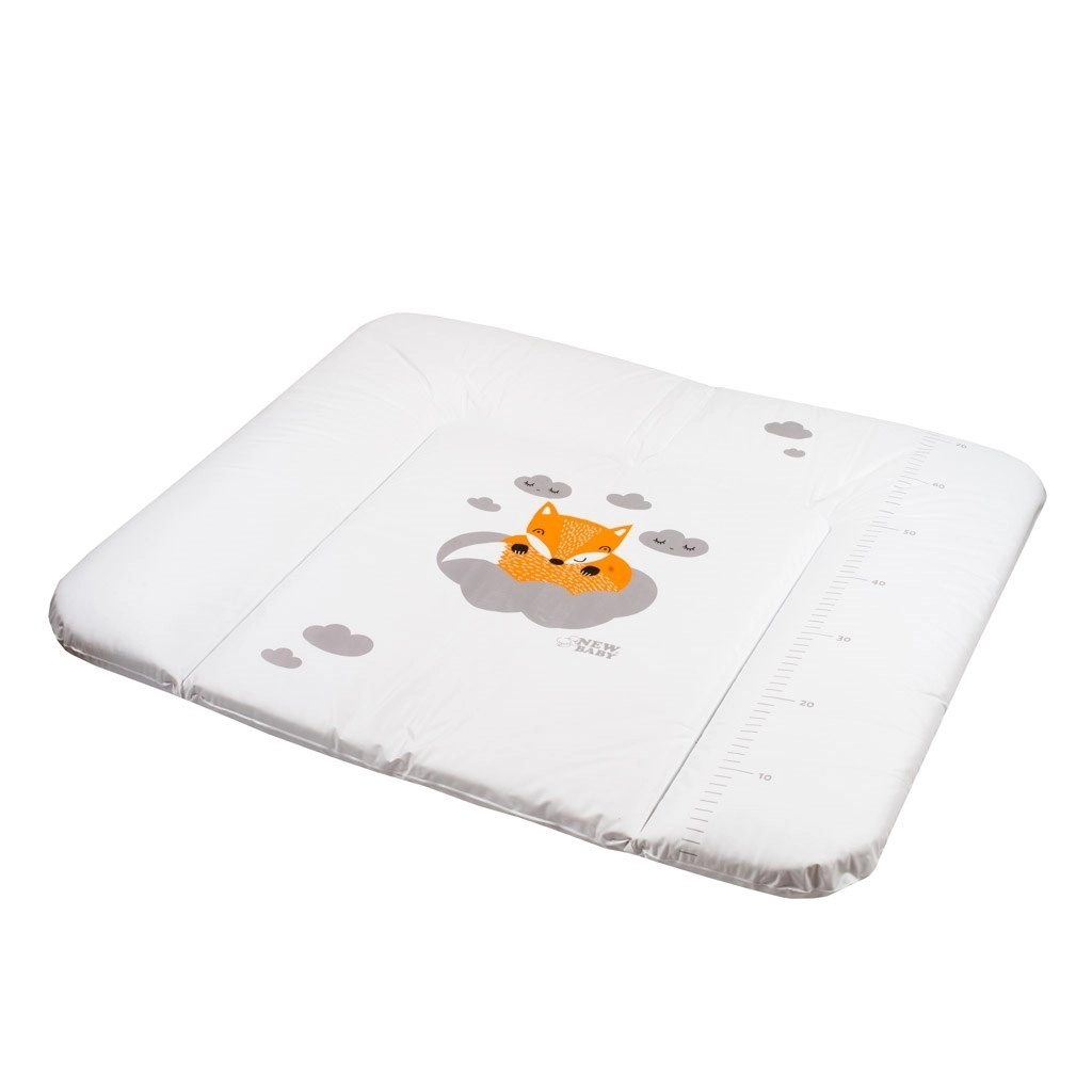 Den bløde puslepude NEW BABY med rævemotiv er ideel til daglig pusling derhjemme og på kommode. Den byder på moderne design, vandtæt plastoverflade og behagelig formgivning for en sikker og komfortabel følelse for babyen.