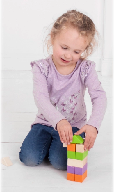 Den miljøvenlige farve på klodserne og de plastiske “hatte” er ikke kun æstetisk tiltalende, men også sikre for børn.