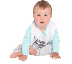 Denne hagesmæk fra NEW BABY er fremstillet af blød og kvalitetsrig 100% bomuld, som er skånsom mod babys sarte hud. Den dobbelte konstruktion beskytter effektivt tøjet mod snavs under både spisning og drikning.