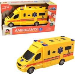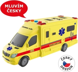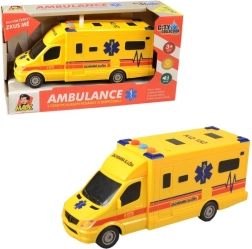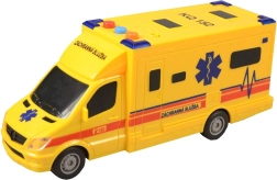 Realistisk legetøjsambulance med friløb med lyseffekter, sirinelyd og stemmemeddelelser fra dispatch og besætning. Udført i plast, størrelse ca. 19 cm, ideel til både drenge og piger fra 3 år.