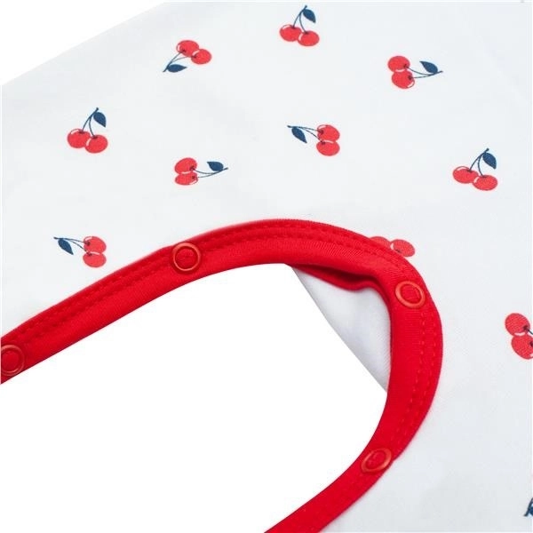Designet med kirsebær og den solide kvalitet fra Cherry-kollektionen understreger det legende og blide udtryk. Applikationen er forstærket på bagsiden mod skrammen, så den ikke irriterer huden. Et godt valg til sommergarderoben eller som en kær gave.