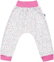 Joggingbukserne har en bredere, behagelig linning, er indsnævret ved benene med kant og er dekoreret med blomsterprint over hele fladen. Takket være 100% bomuld er sættet blødt, åndbart og skånsomt mod babyens hud.