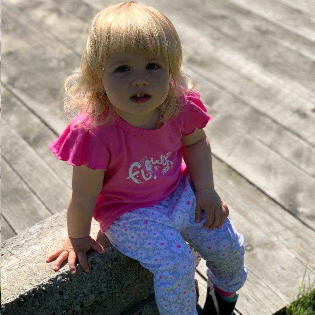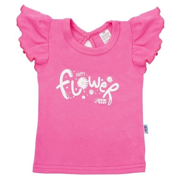 Det stilfulde og behagelige New Baby Happy Flower sæt er ideelt til hverdag. T-shirten med den søde tekst og volangkanter på ærmerne giver outfittet et frisk pift, mens bukserne med allover blomsterprint sikrer maksimal komfort både ved leg og hvile. Den praktiske trykknap bagpå ved halsen gør påklædning og afklædning nemmere.