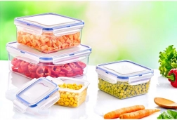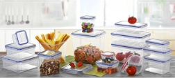 Gennemsigtige sider giver hurtig overblik over indholdet, og stabelbarheden sparer plads i køleskab og skabe.