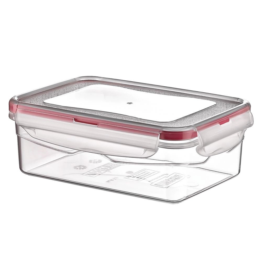 Gennemsigtig plastik madboks på 400 ml holder din mad frisk længere takket være den silikoneforseglede indsats og fire låseklips. De kompakte mål 15 × 10,5 × 5 cm passer i køleskab, taske og lunchboks og gør det nemt at stable og organisere.