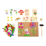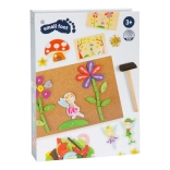 Dette kreative hammer-sæt med feer giver børn timevis af sjov skabende leg. Dele med forborede huller fastgøres let med søm på den kvalitetsrige korkplade og danner eventyrlige scener fulde af blomster, feer og svampe. Den praktiske træhammer er behagelig at holde om, og arbejdet er sikkert og intuitivt.