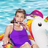 Nyd sommerens sjov med en markant og legende badering i enhjørningeform, som flyder fremragende, er let at holde fast i og lyser op på vandet. Takket være den holdbare, testede vinyl er den ideel til daglige vandaktiviteter og afslappet dase.